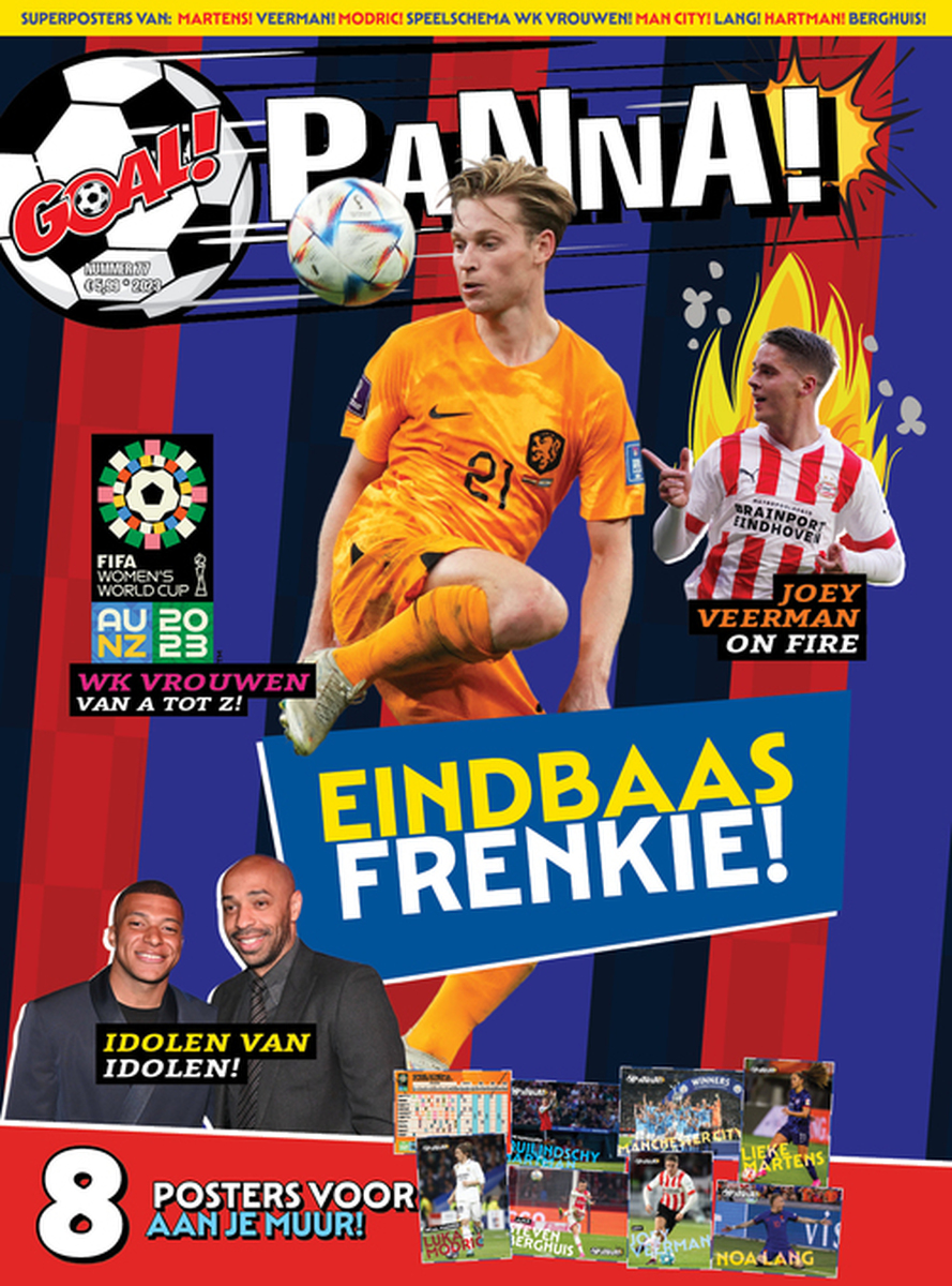Gaan we deze zomer Wereldkampioen worden? Die kans bestaat en dat zou een stunt van jewelste betekenen. De OranjeLeeuwinnen gaan strijden in Australië en Nieuw-Zeeland om de beste van allemaal te worden! Uiteraard daarover volop aandacht in PANNA! 77. Ook zijn interviews te lezen met Frenkie de Jong van FC Barcelona, met Joey Veerman van PSV, met Wout&Maud en lees je weer de meest bijzondere lijstjes. En natuurlijk ontbreken de acht superposters niet! Met onder meer het speelschema van het WK Vrouwen!
